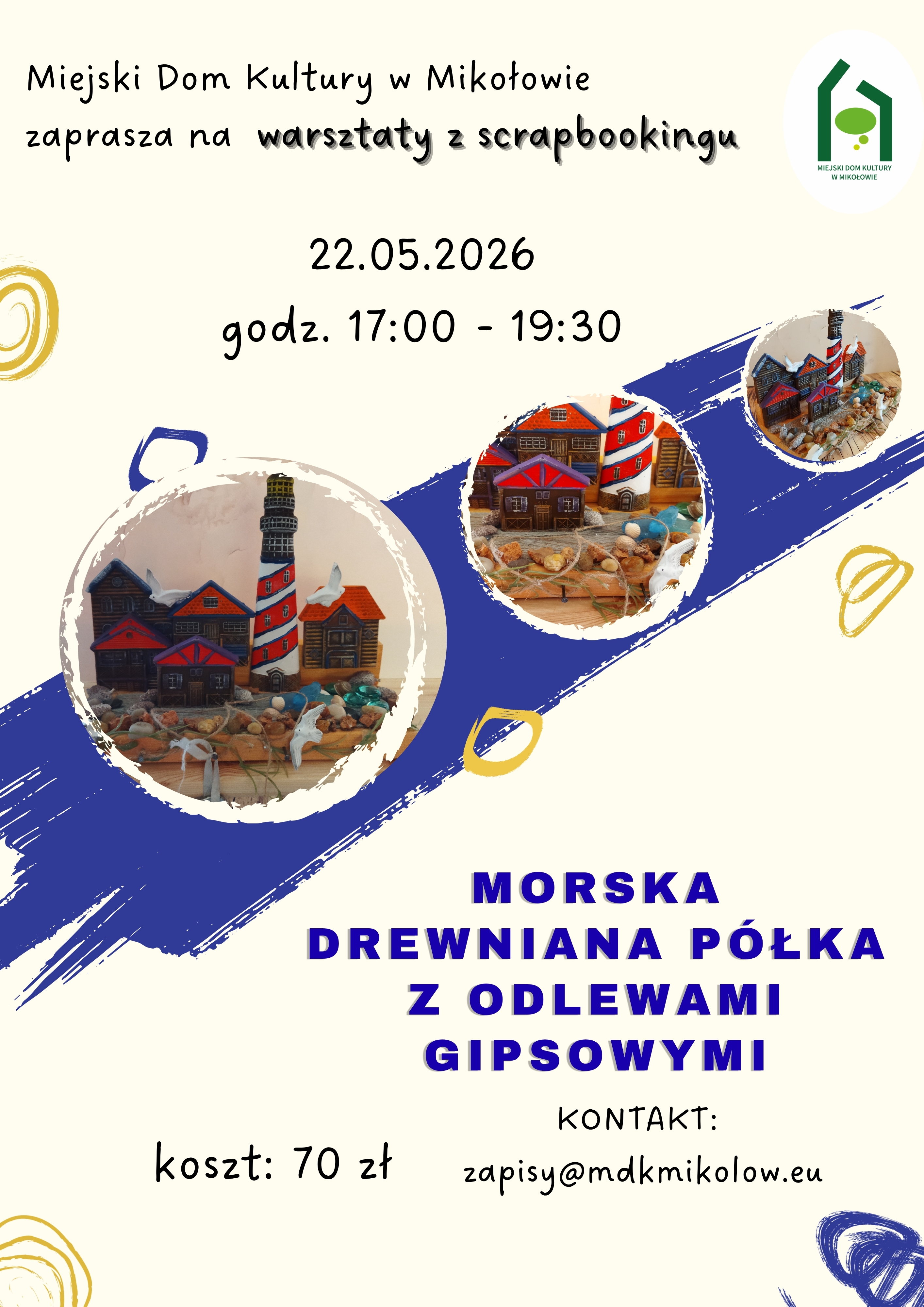 Cena warsztatów to 70 zł płatne przelewem na konto MDK. Zgłoszenia pod adresem zapisy@mdkmikolow.eu.