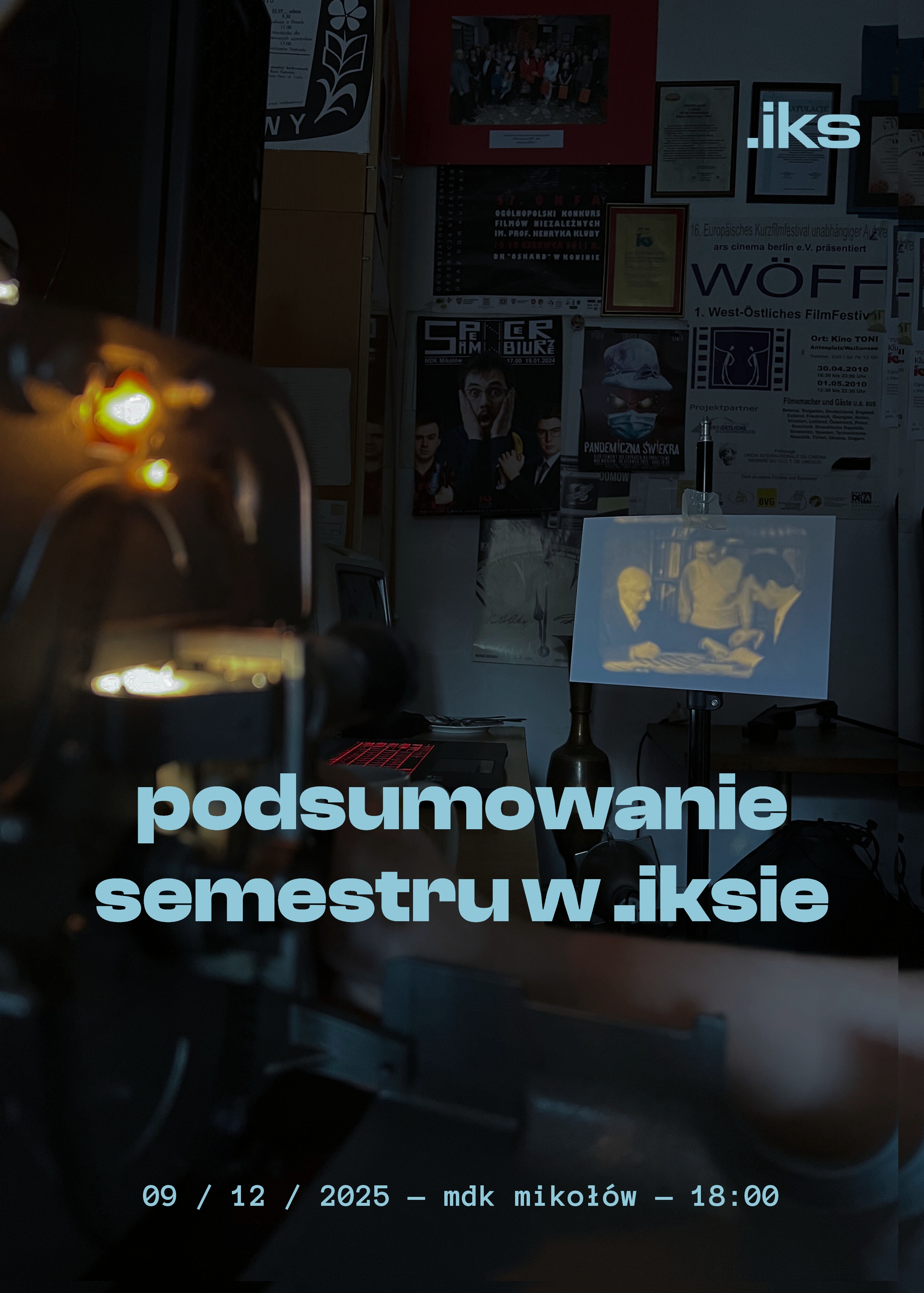 9 grudnia o godzinie 18.00 odbędzie się podsumowanie kolejnego półrocza działalności Amatorskiego Klubu Filmowego iks Mikołów. Serdecznie zapraszamy - wstęp wolny.