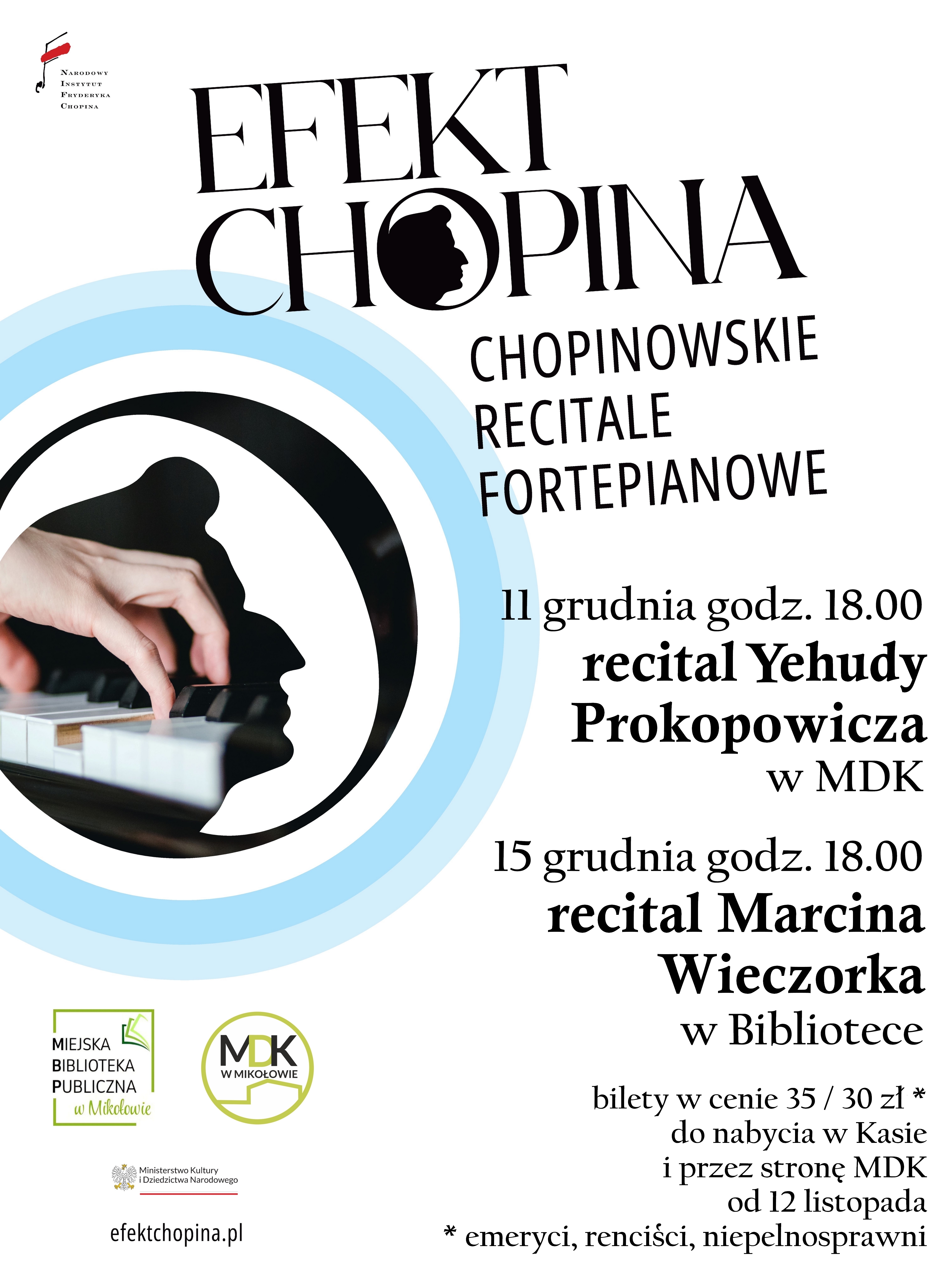 Zapraszamy na wyjątkowe recitale fortepianowe, będące częścią projektu "Efekt Chopina", realizowanego przez Narodowy Instytut Fryderyka Chopina.
