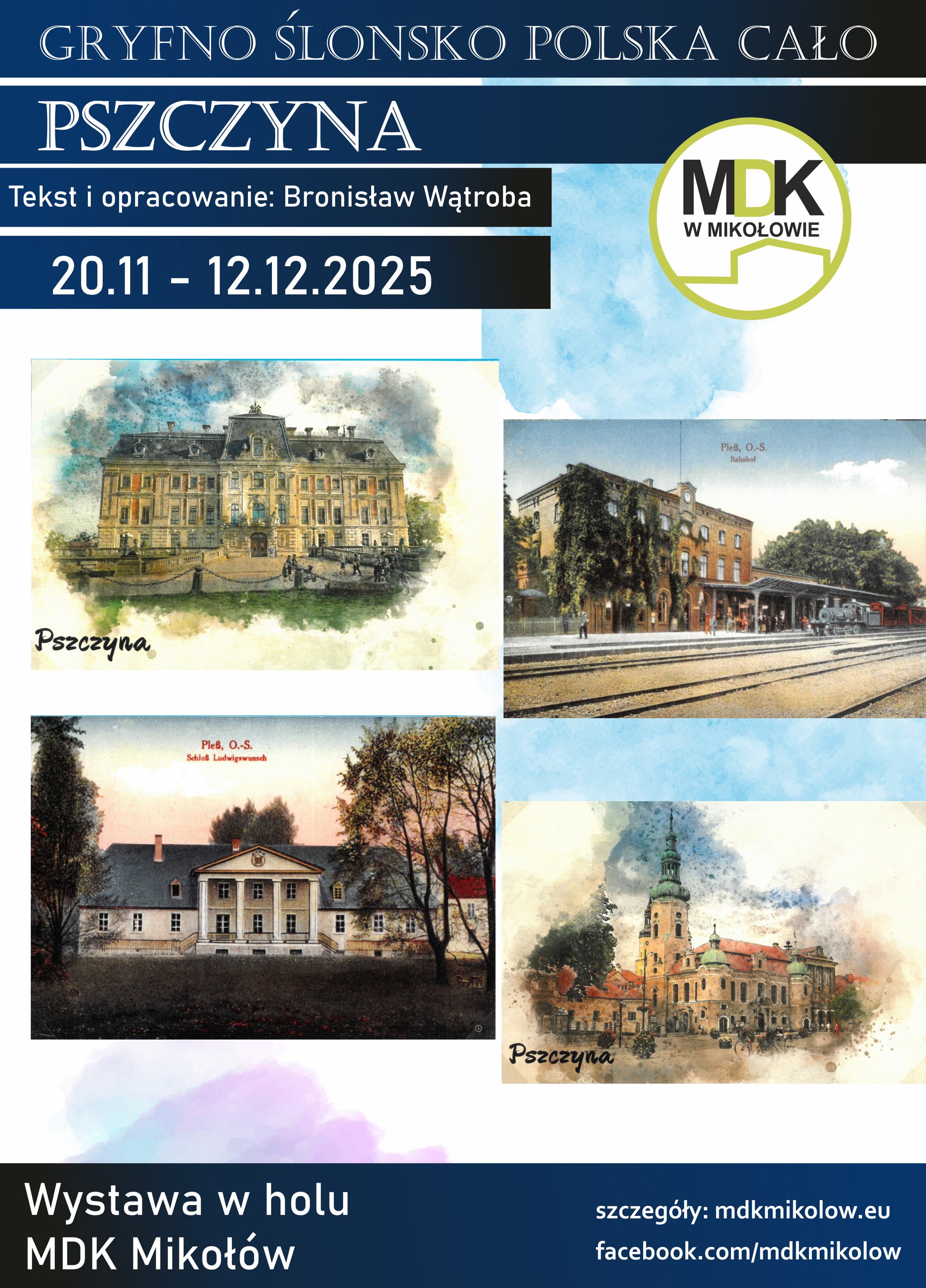Od 20 listopada do 12 grudnia w naszym holu można oglądać kolejną autorstwa Bronisława Wątroby, który tym razem w cyklu "Gryfno slonsko Polska cało" przybliża nam Pszczynę - jak zawsze z humorem i po śląsku. Oczywiście nie mogło zabraknąć także ciekawych zdjęć i widokówek.